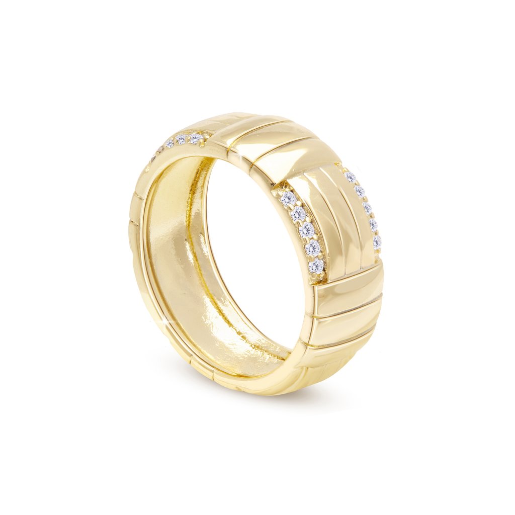 Pozlacený dámský prsten 14k zlatem, masivní - ozdobený průřezy a zirkony 4000315
