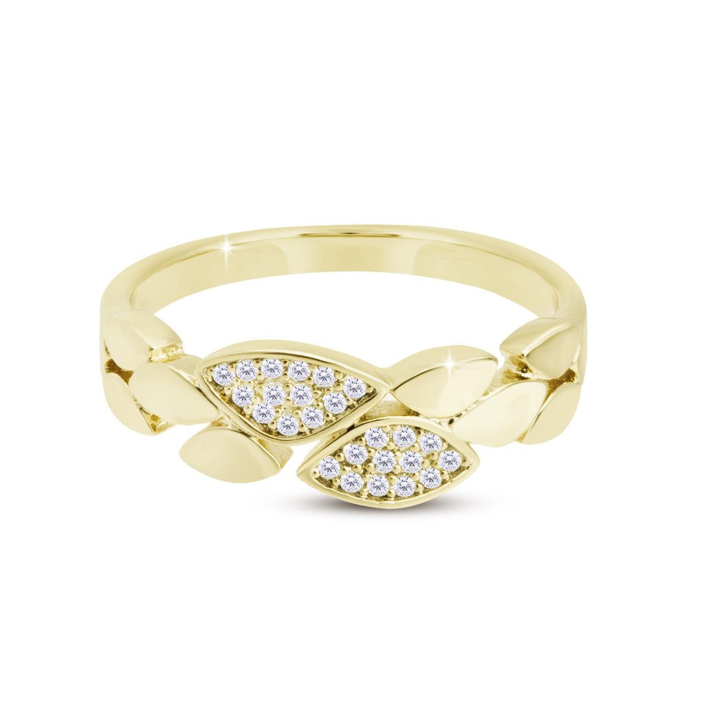 Pozlacený dámský prsten 14k zlatem, ozdobený listy s čirými zirkony 4000330