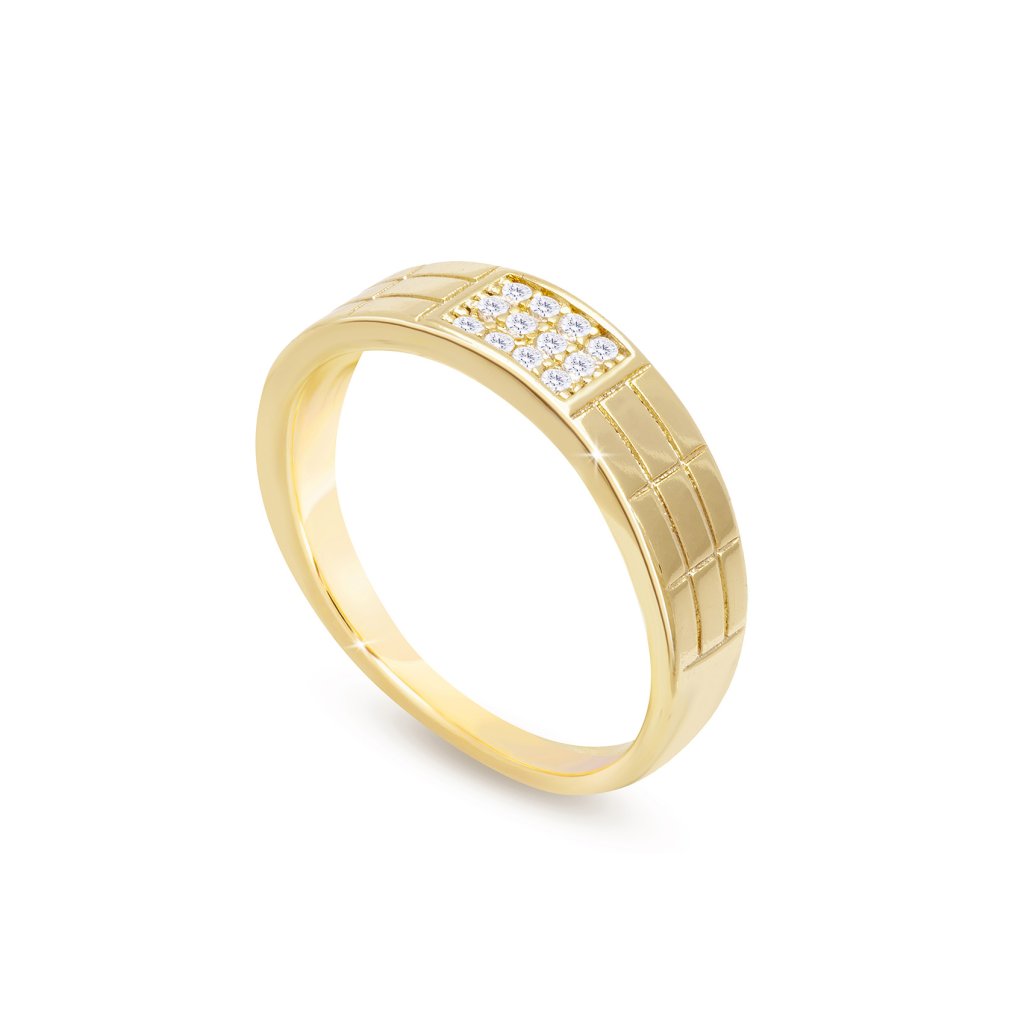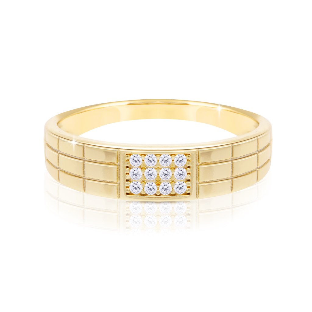 Pozlacený dámský prsten 14k zlatem, zdobený zirkony ve tvaru čtverce.