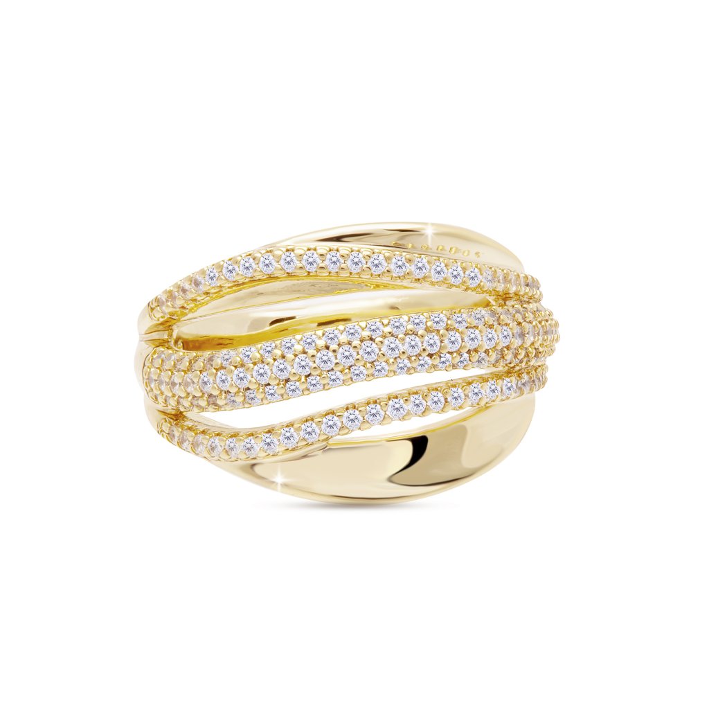 Pozlacený dámský prsten 14k zlatem - vlnitý motiv, ozdobený pásy zirkonů 4000317