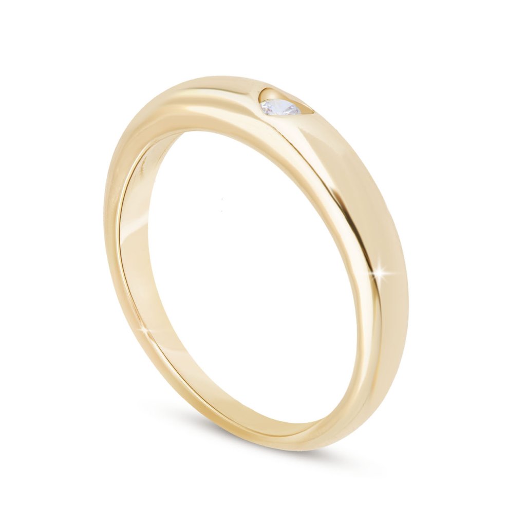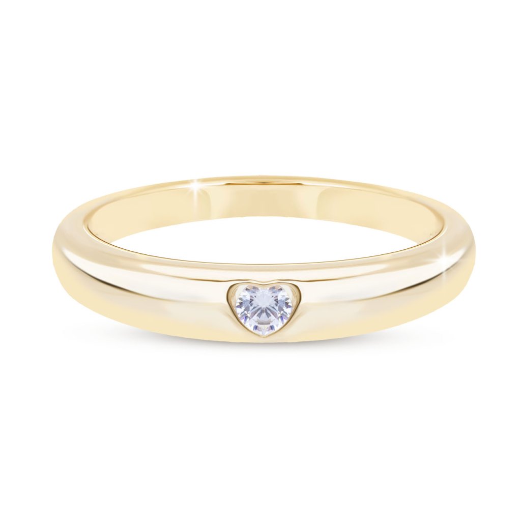 Jemný slušivý dámský prsten pozlacený 14k zlatem. Prsten zdobí kubický čirý zirkon, který je vsazen do tvaru něžného srdce.