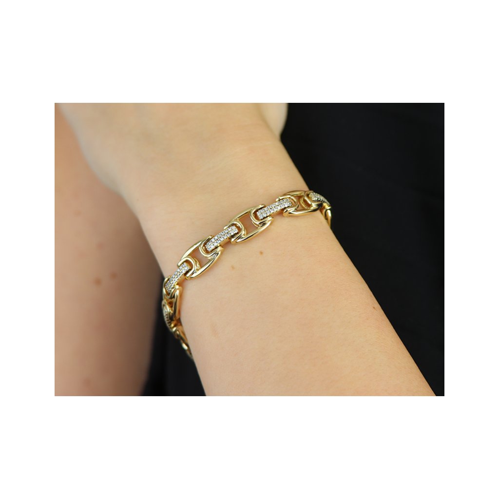 Pozlacený náramek 14k, členitý s ozdobnými průřezy a zirkony 2002345