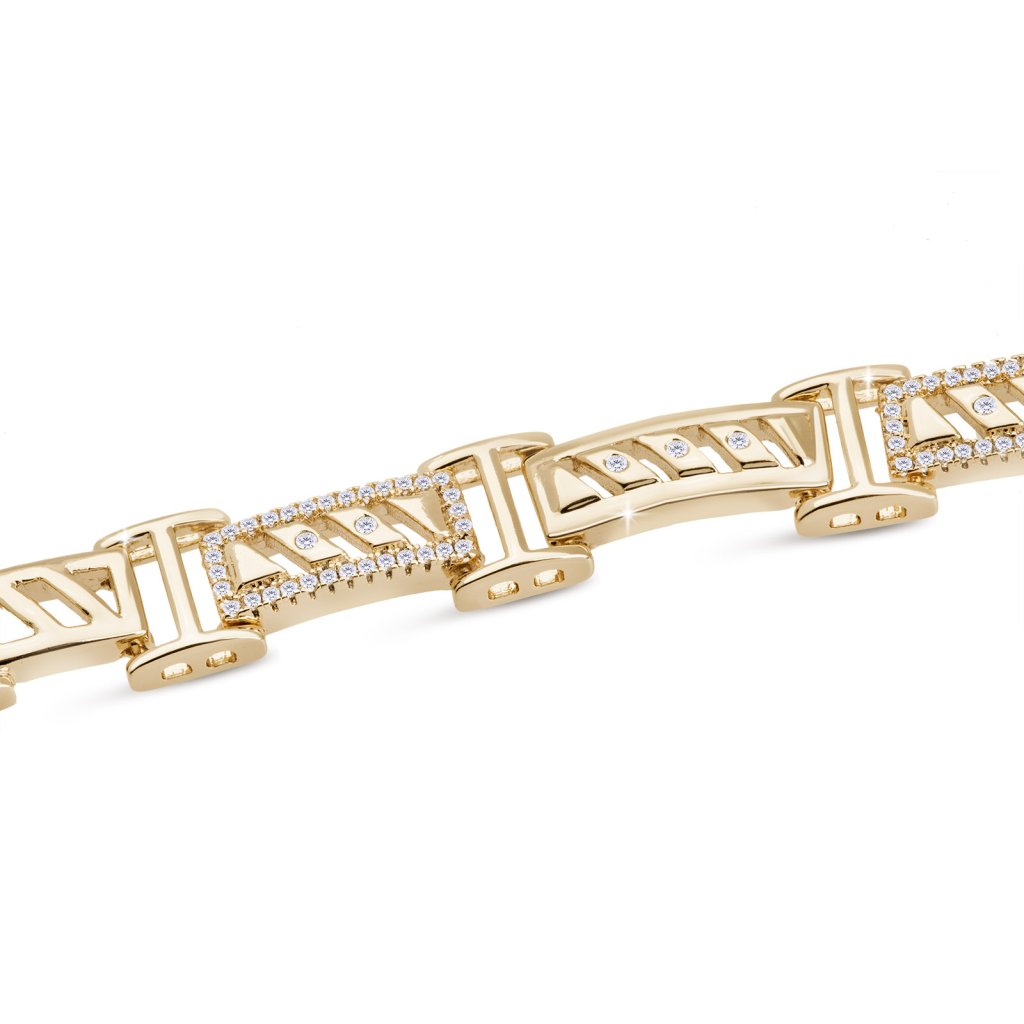 Pozlacený náramek 14k, geometrické tvary se zirkony a průřezy 2002347