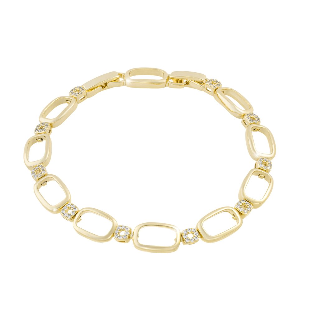 Pozlacený náramek 14k, lesklé oválky s kamínky zirkonů 2002222