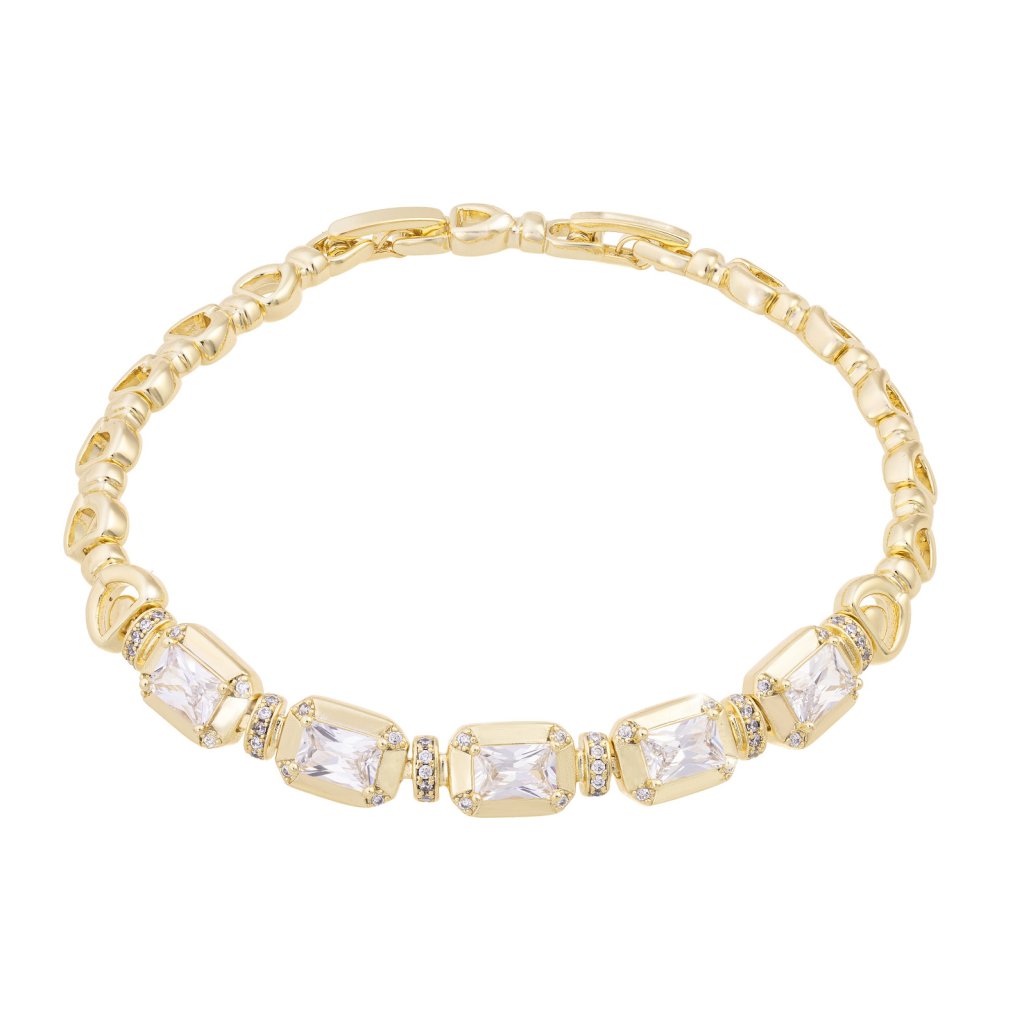 - Pozlacený náramek 14k, obdélníčky ozdobené čirými zirkony.