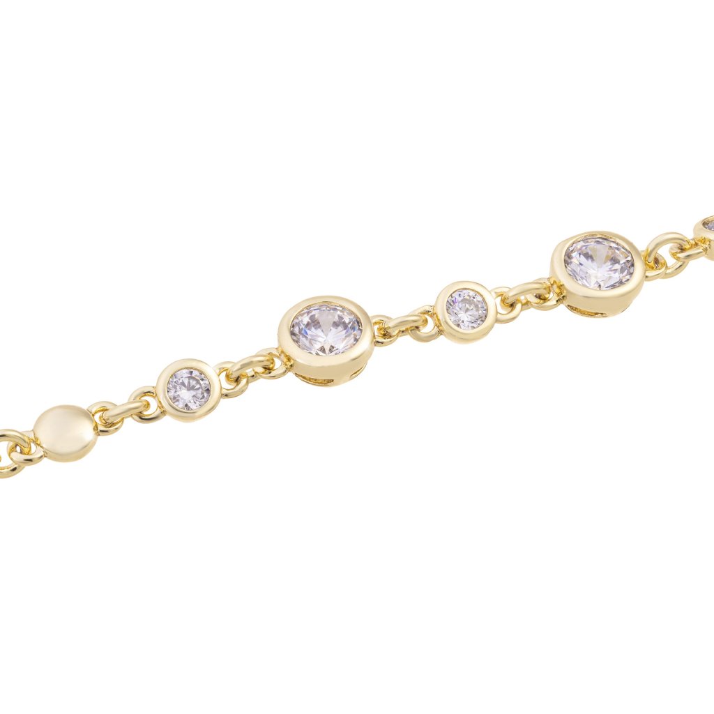 - Pozlacený náramek 14k, složený z koleček a ozdobený zirkony.