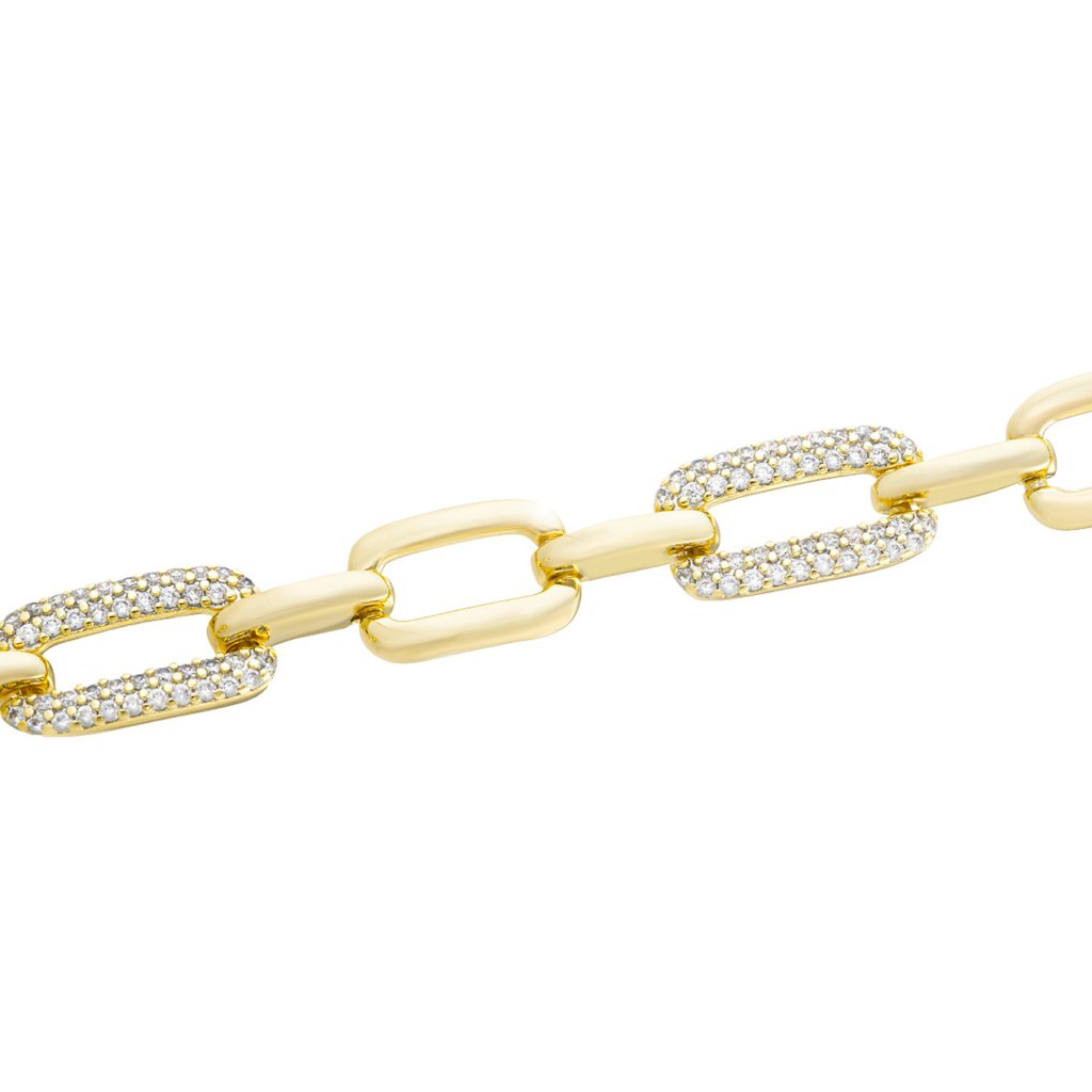 - Tento krásný pozlacený náramek 14k je dokonalým způsobem, jak dodat nádech luxusu a krásy. Tento náramek je vyroben s elegantním motivem spojených zrn a je osazen třpytivými zirkony, které nabízejí jedinečný asymetrický lesk. Masivní zlatá konstrukce zajišťuje dlouhou životnost a je také antialergická a odolná proti korozi.