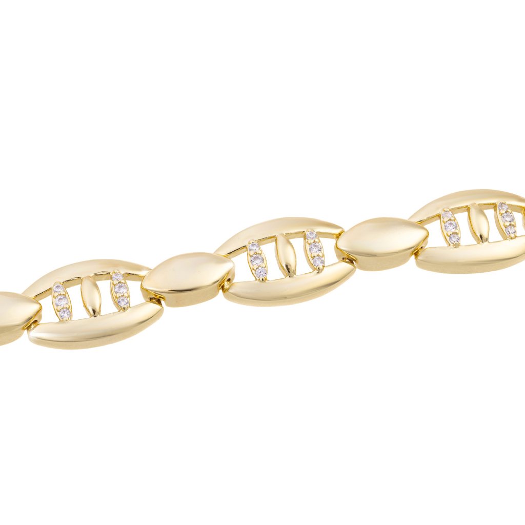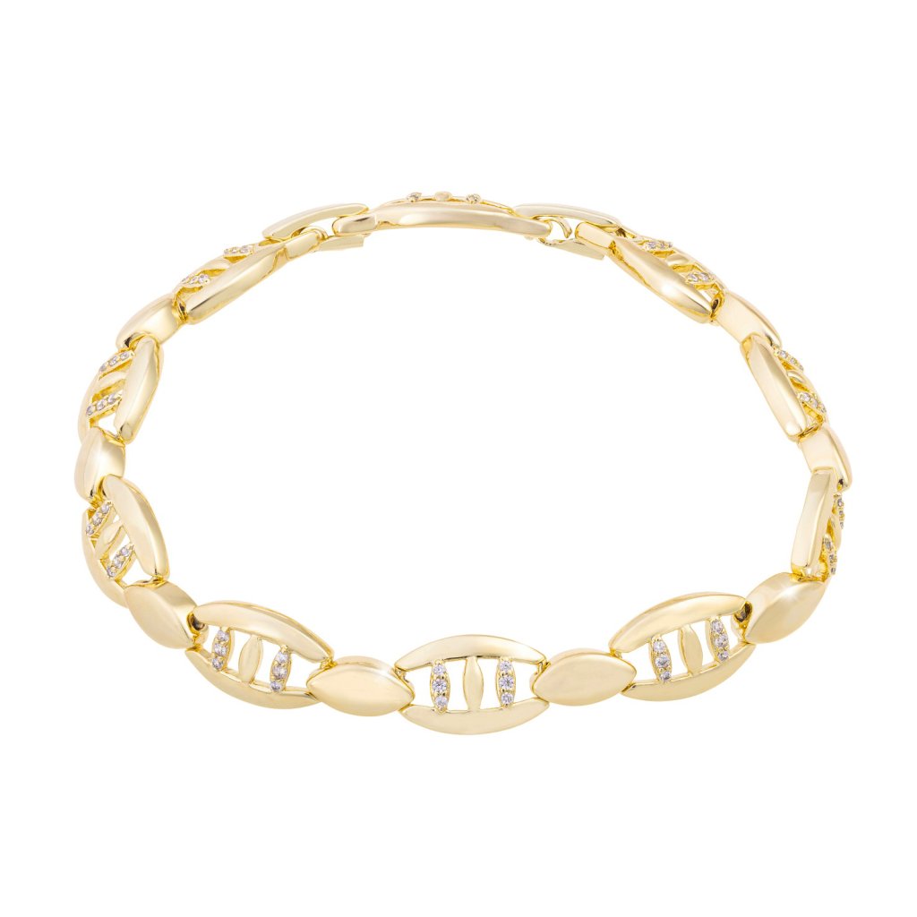 Pozlacený náramek 14k, zrna ozdobené zirkony a průřezy 2002200
