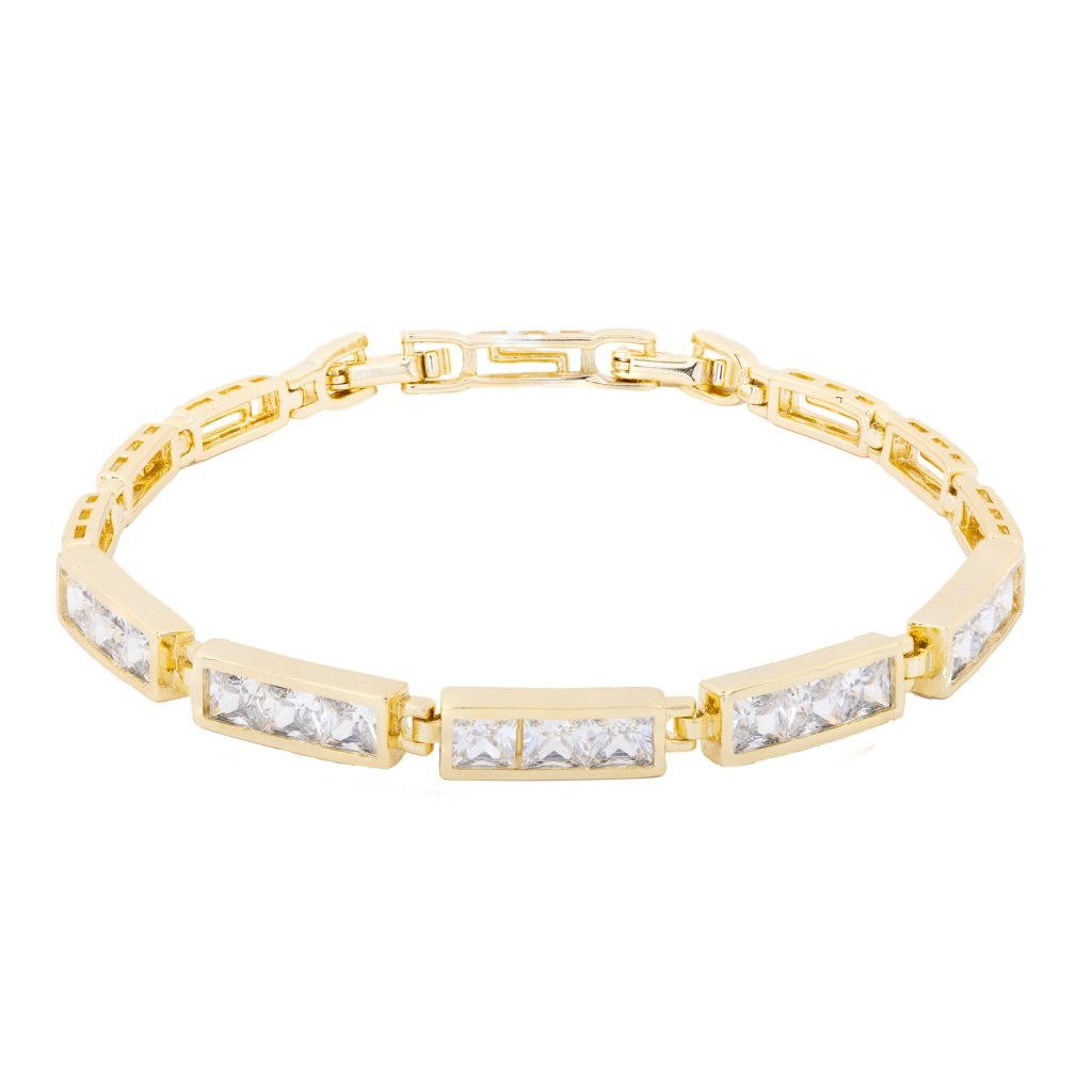 Pozlacený náramek 14k členitý, obdélníky zdobené kameny zirkonů 2002166