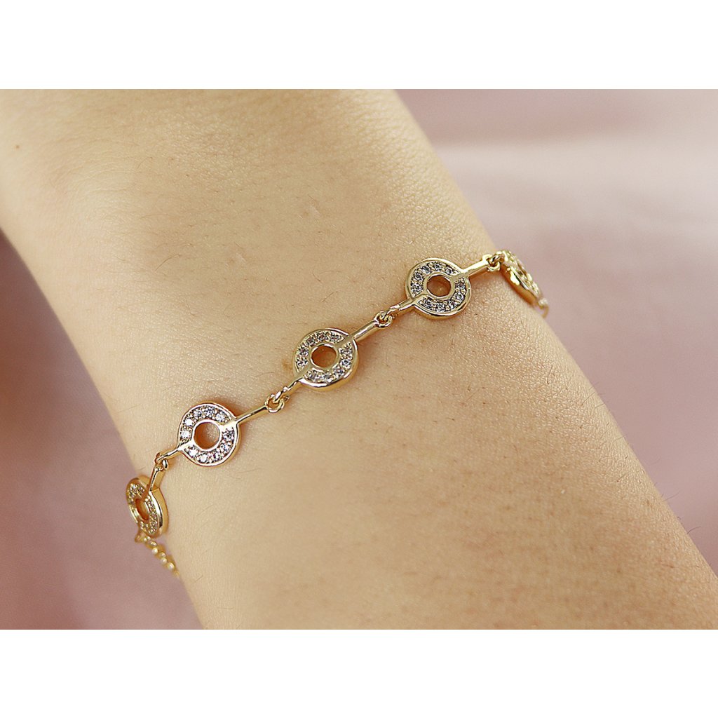 Pozlacený náramek 14k jemný, ozdobený drobnými kolečky se zirkony 2002375