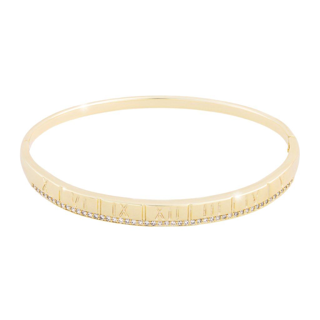 Pozlacený náramek 14k pevný, římské číslice se zirkony 2002159