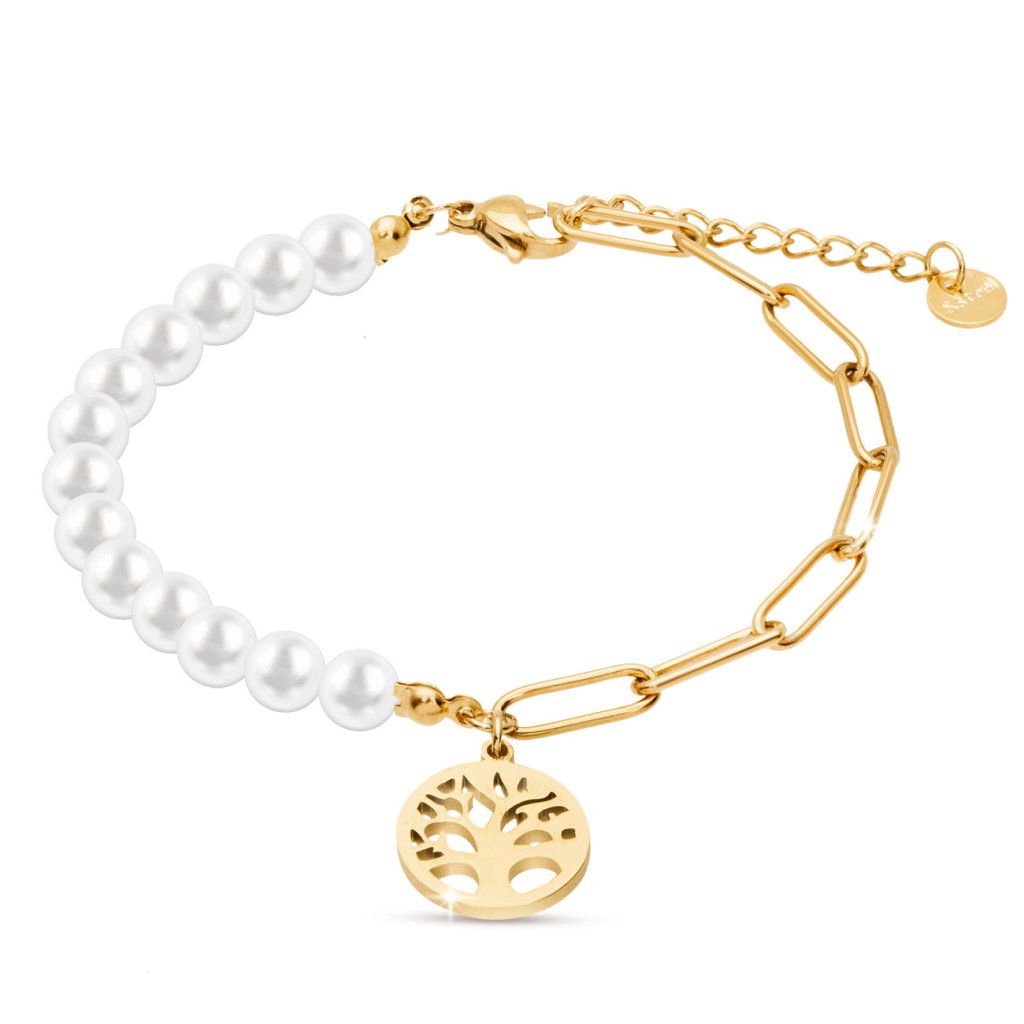 Pozlacený náramek na ruku z chirurgické oceli s perličkami a stromem života 2002538