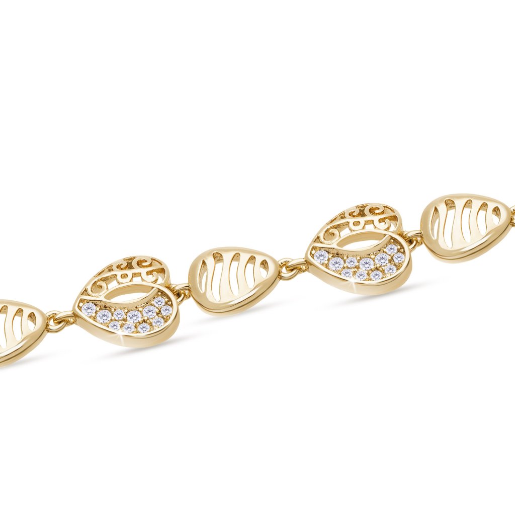 - Pozlacený náramek 14k se zirkony, složený z tvarů srdíček a ozdobnými průřezy.