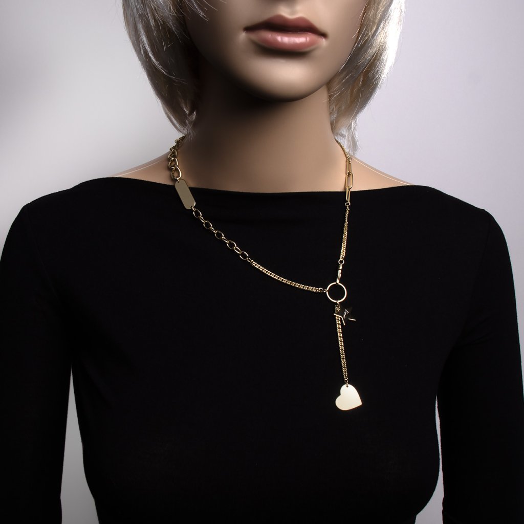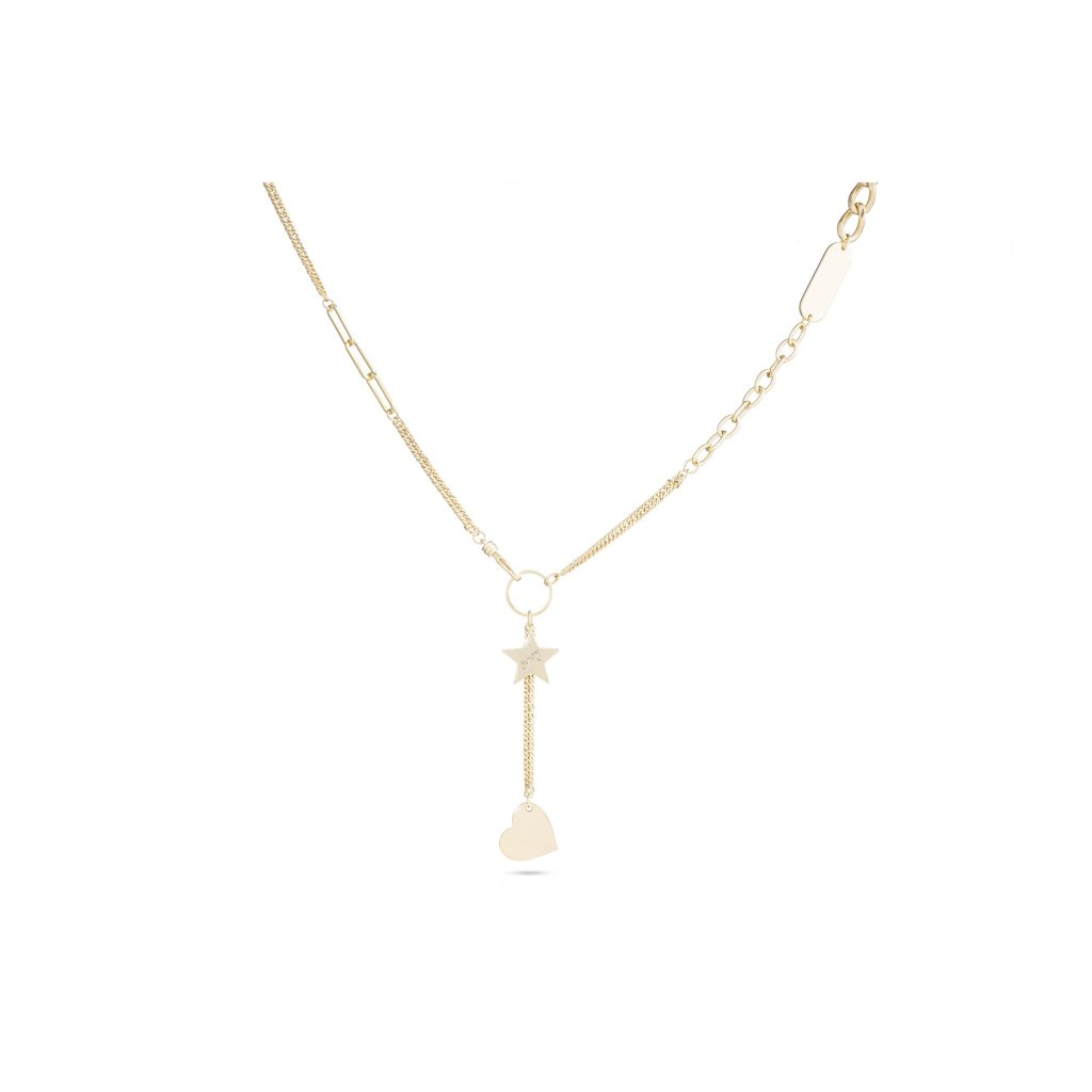Pozlacený řetízek 14k zlatem, kombinace řetízků ve tvaru písmene ypsilon s hvězdičkou a srdcem 3001534