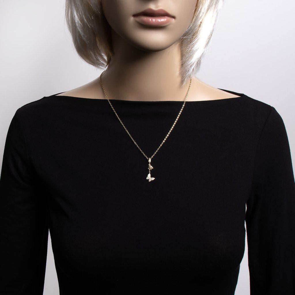Pozlacený řetízek 14k zlatem, motýl se zirkony 3002052