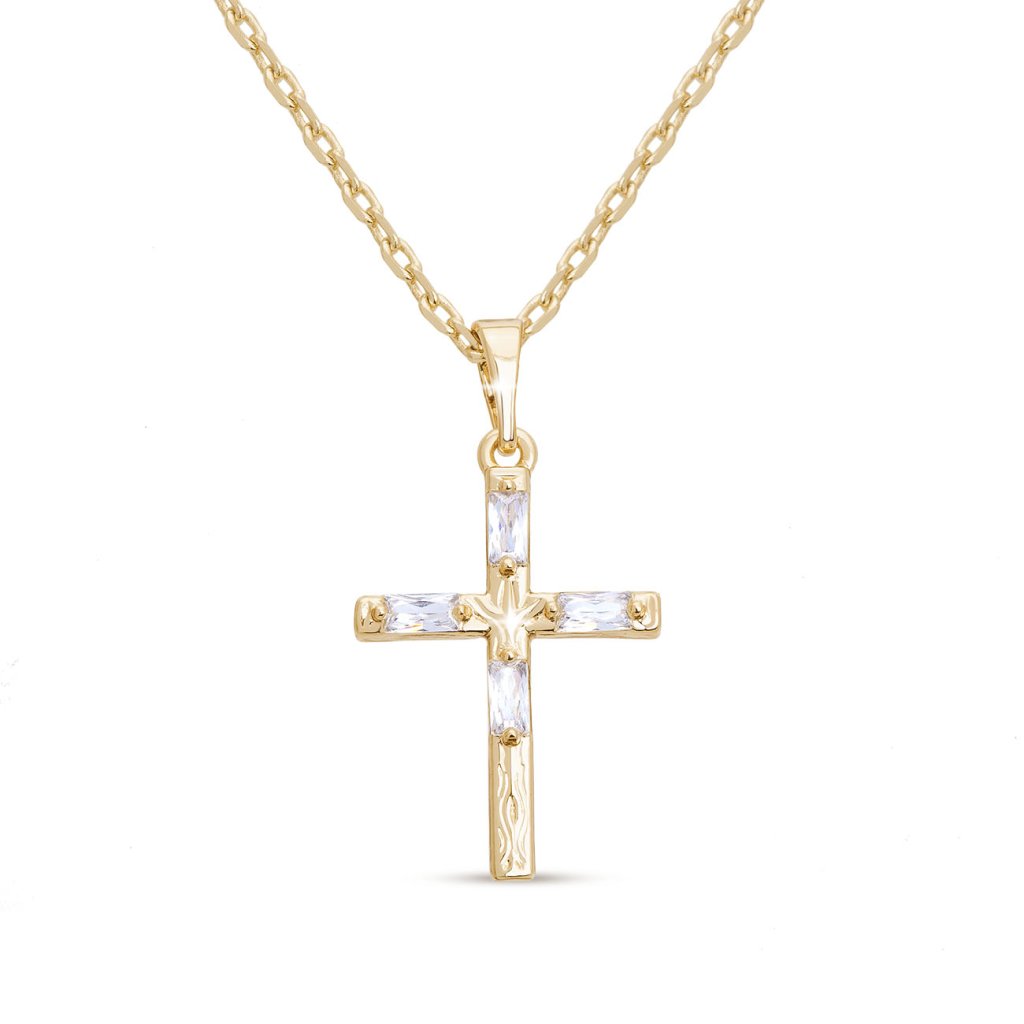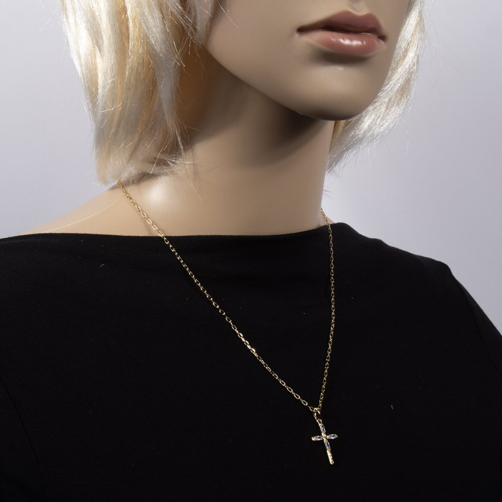 Pozlacený řetízek 14k zlatem, s křížkem a zirkony 3002056