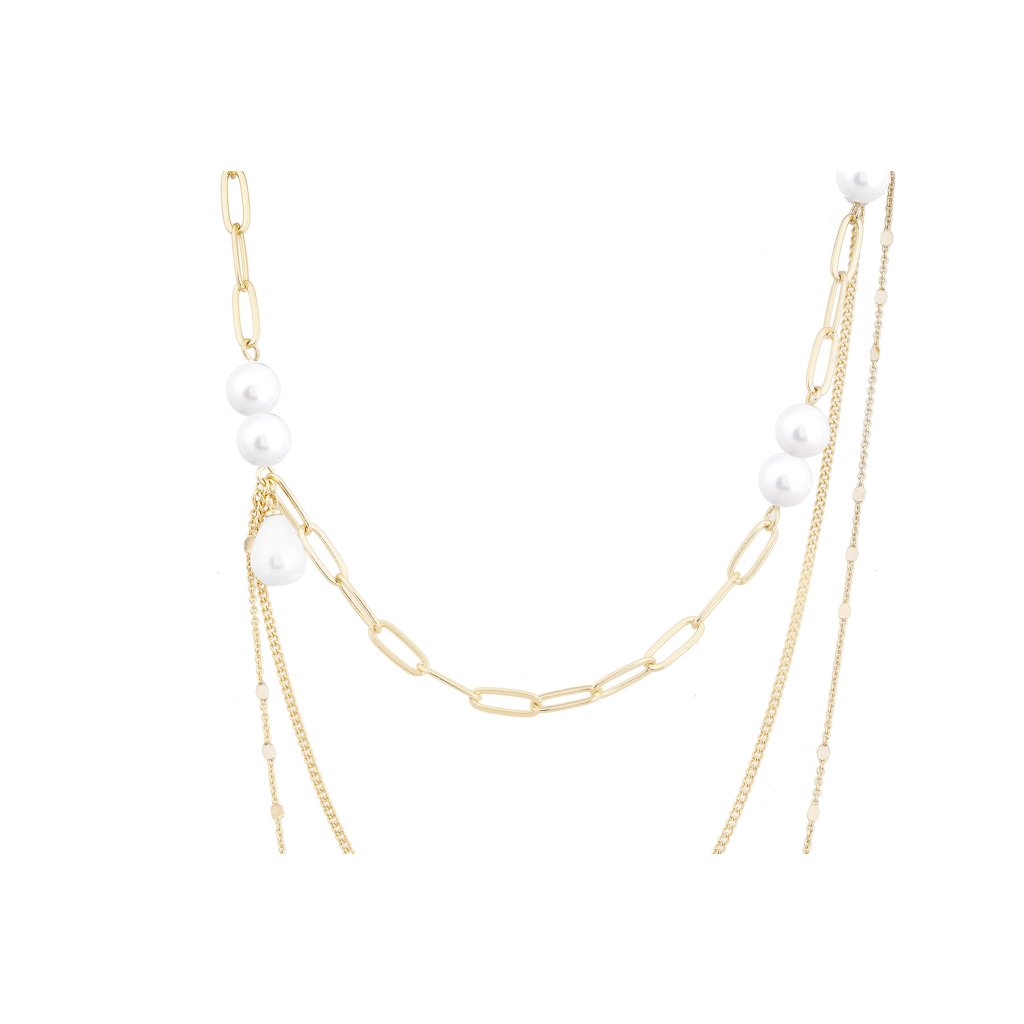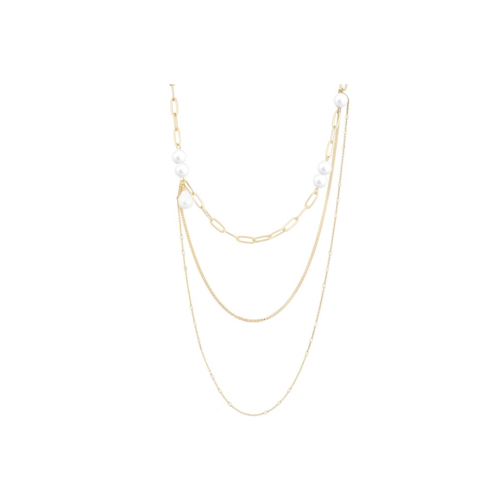 Pozlacený řetízek 14k zlatem, trojřadý s perleťovými kamínky 3001469