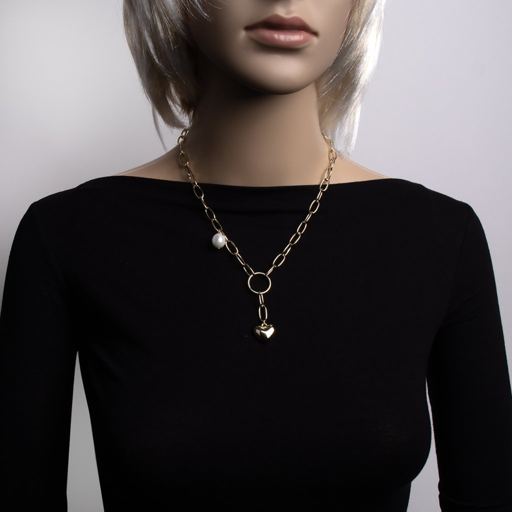 VERONA 1535 Řetízek ve tvaru písmene ypsilon, se srdcem a bílou perlou