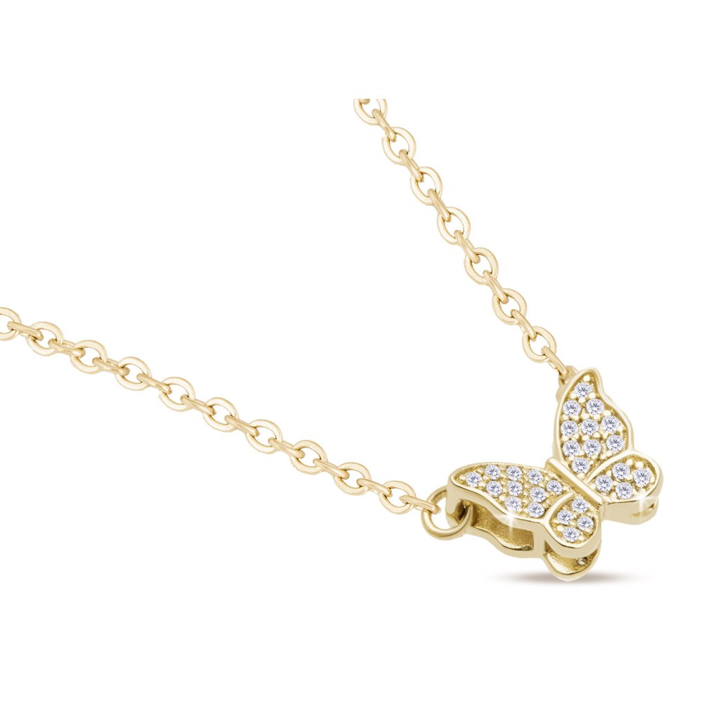 Pozlacený řetízek 14k zlatem s přívěskem, motýlek vykládaný zirkony 3001897