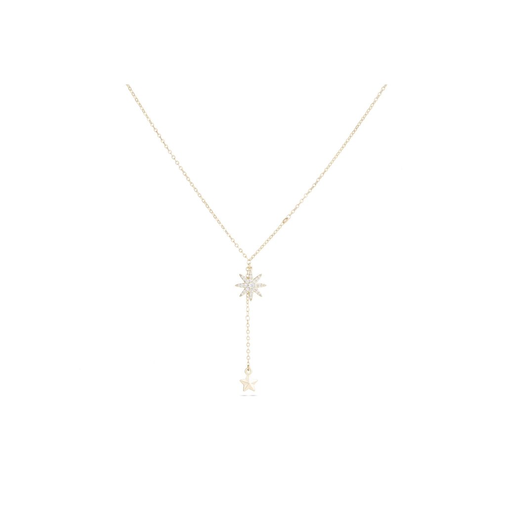 Pozlacený řetízek 14k zlatem s přívěskem, ve tvaru písmene ypsilon a hvězdiček se zirkony 3001532