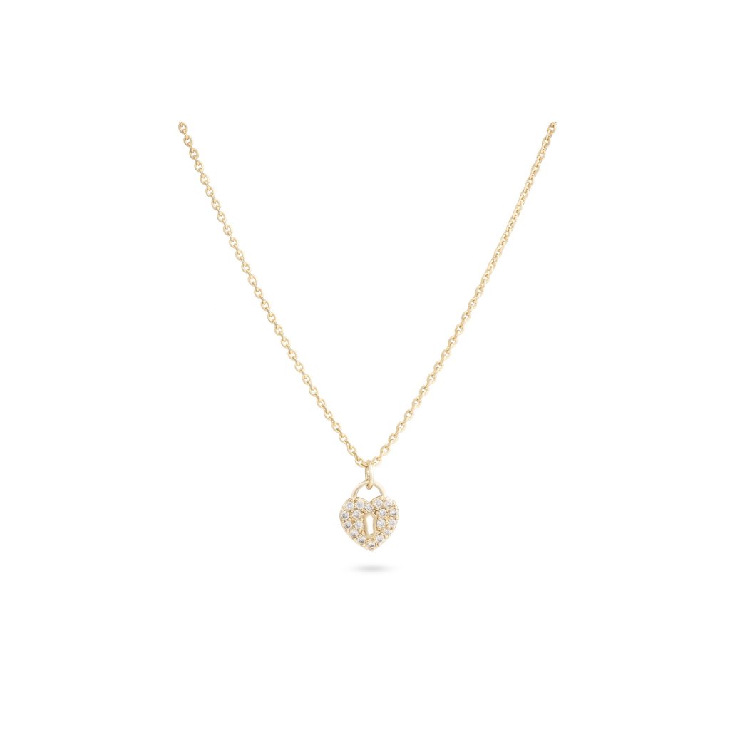 Módní dámský řetízek, pozlacený 14k zlatem s motivem zámku ve tvaru srdce. Vysoký lesk, který dodává eleganci ke každému oděvu.