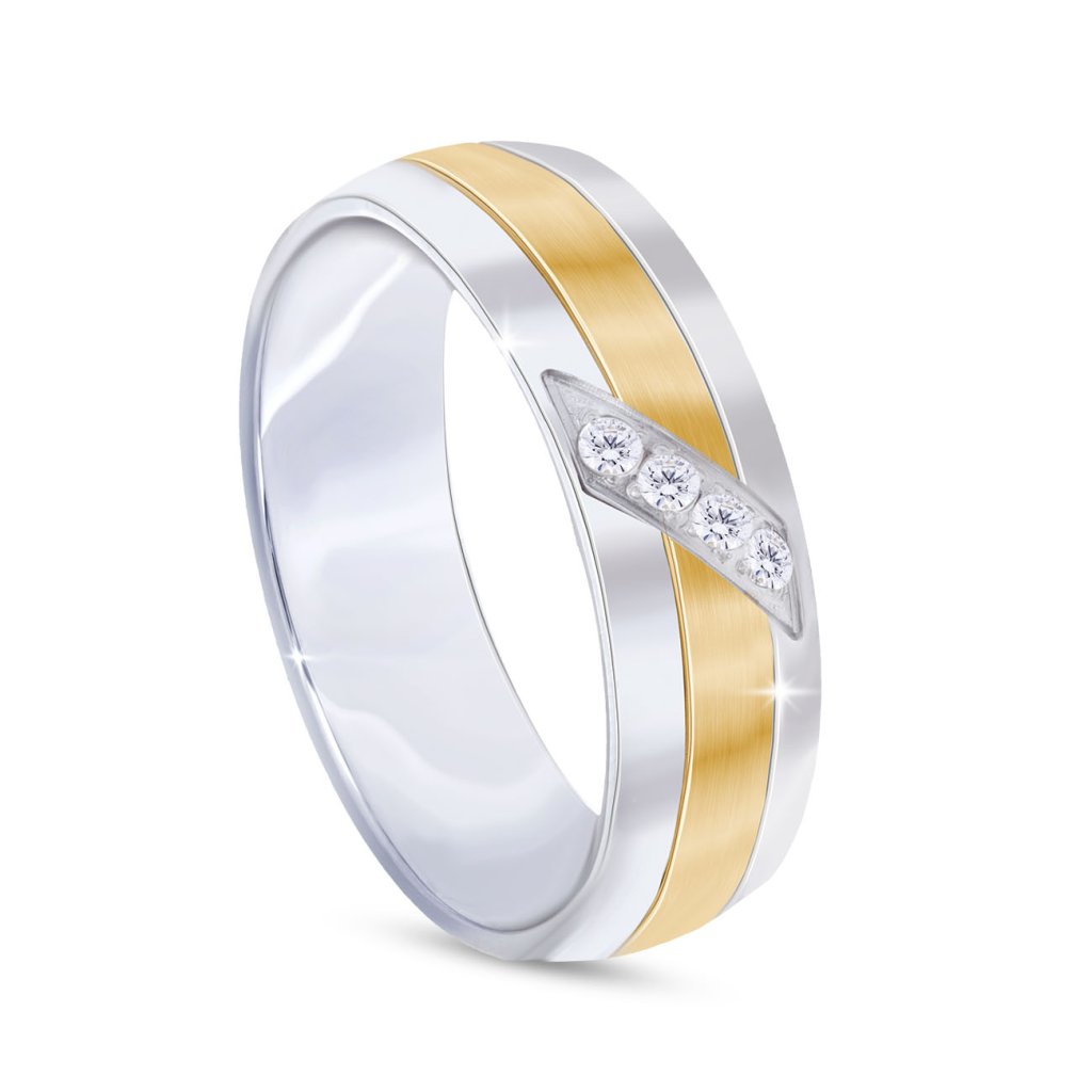 Prsten z chirurgické oceli se zlatým proužkem a zirkony 4000445