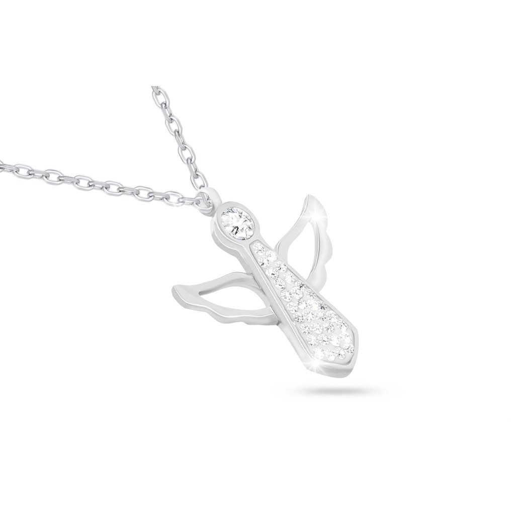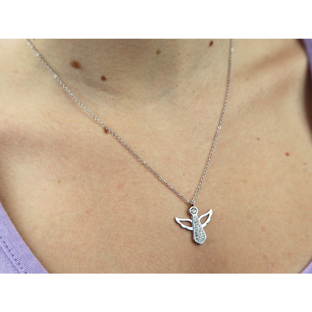 - Řetízek z chirurgické oceli s přívěskem, anděl s roztaženými křídly a zirkony.