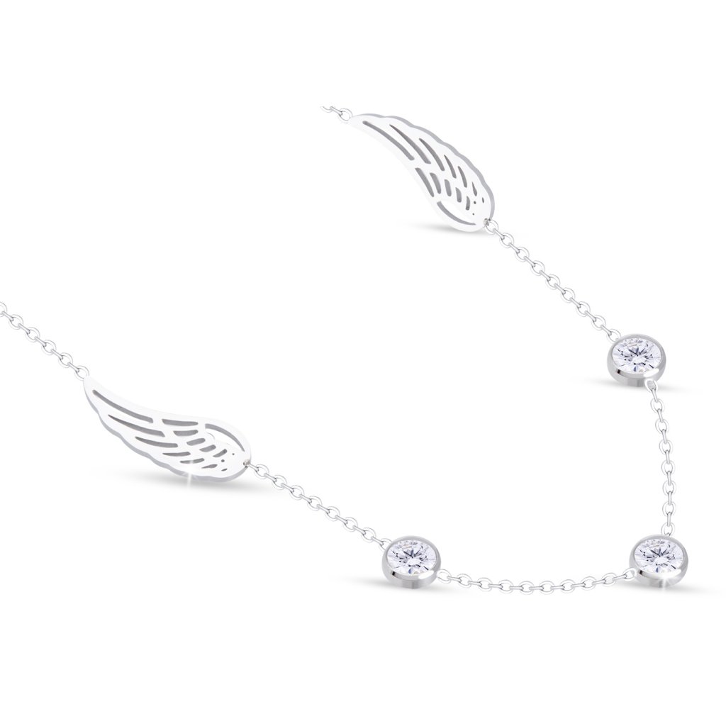 - Řetízek z chirurgické oceli s přívěskem, jemný s motivem - andělského křídla a zirkonu.