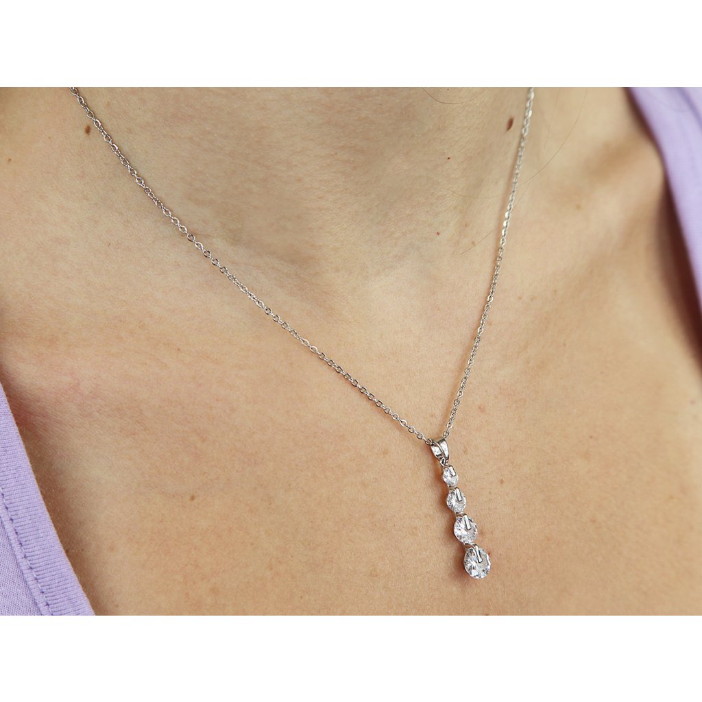 - Řetízek z chirurgické oceli s přívěskem, kapka vykládaná zirkony.