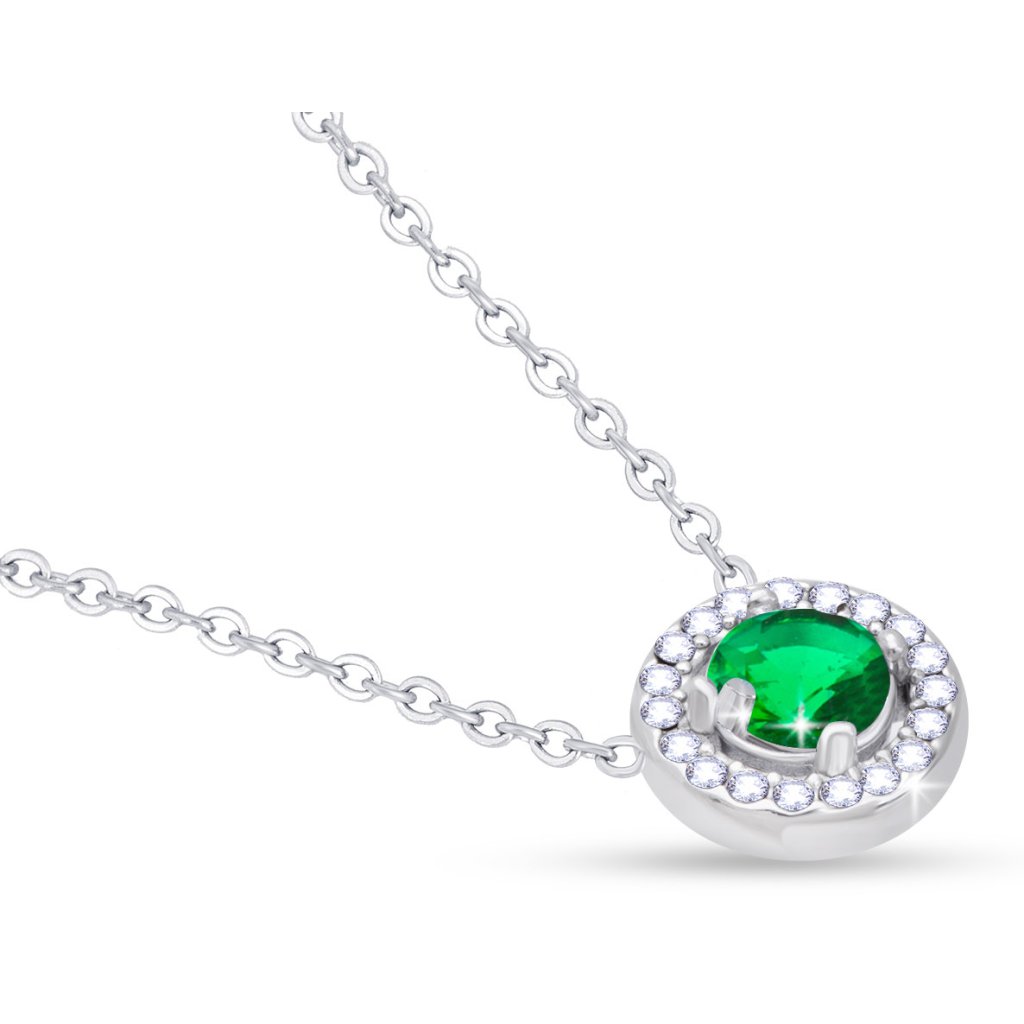 - Řetízek z chirurgické oceli s přívěskem, kroužek osázený zeleným zirkonem.