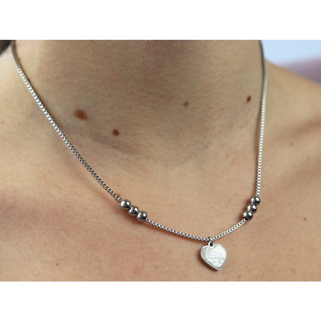 - Řetízek z chirurgické oceli s přívěskem, perleťové srdce s kuličkami.