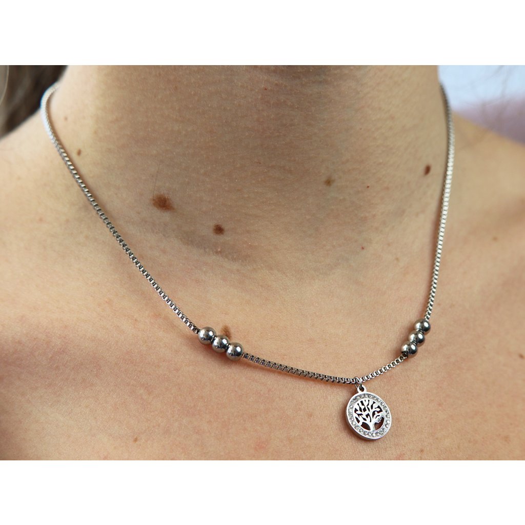 - Řetízek z chirurgické oceli s přívěskem, strom života se zirkony a kuličkami.