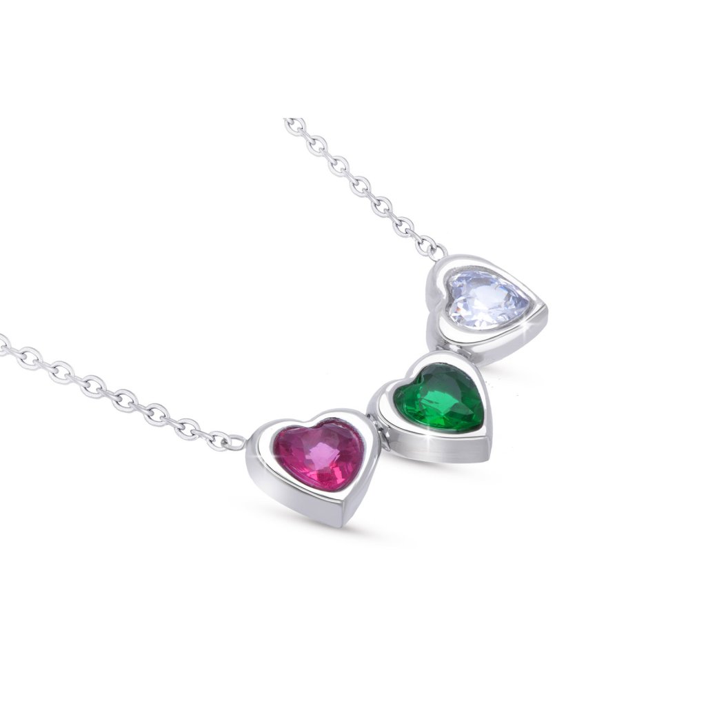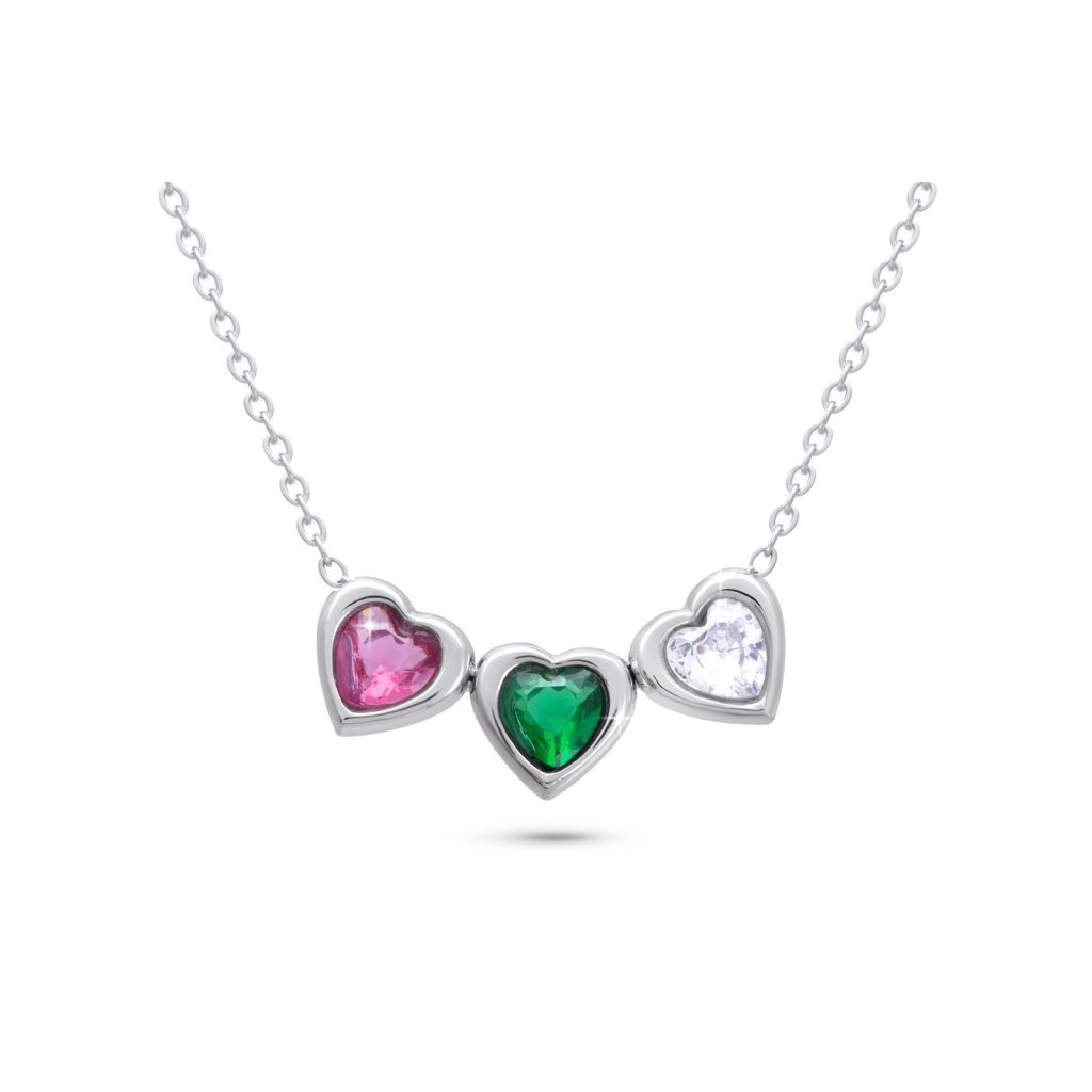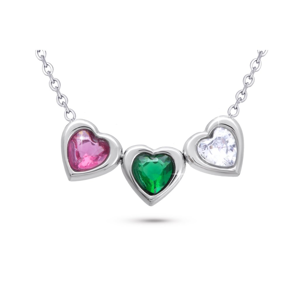 - Řetízek z chirurgické oceli s přívěskem, tři srdíčka ozdobené barevnými zirkony.