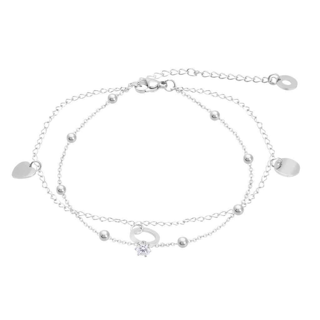 VERONA 1786 Řetízek na nohu, dvojřadý s přívěsky - kolečko, prstýnek, srdce