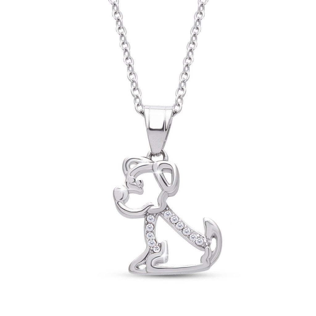 - Vylepšete svůj vzhled tímto jemným a elegantním řetízkem z chirurgické oceli s přívěskem pejska, který se vykládaný kubickými zirkony. Stříbrná barva nerezové oceli z něj dělá ideální doplněk ke každému oblečení, kterému dodá trochu jiskry, aniž by byl příliš výrazný. Jeho antialergické vlastnosti navíc zajišťují, že nedojde k podráždění citlivé pokožky.