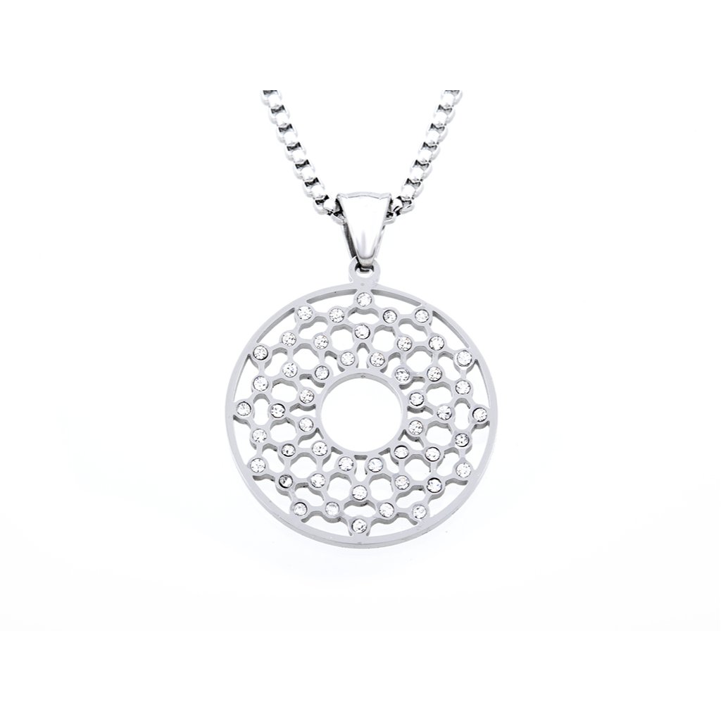 Decentní řetízek z přívěškem je vyrobený z kvalitní nerezové oceli a osazen zirkony Je univerzálním doplňkem k jakémukoliv oděvu.Náhrdelník je velice vkusný. Zapíná se na karabinku.