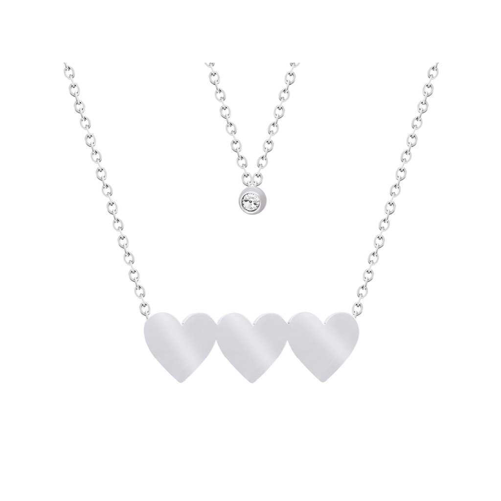 Řetízek z chirurgické oceli, dvojitý, řada srdíčka, drobné zirkony z kvalitní nerezové oceli skvěle doplní váš každodenní outfit.