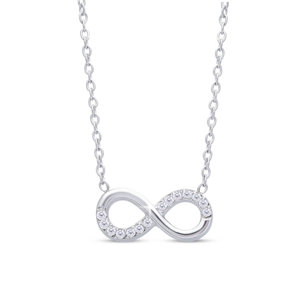 - Vylepšete svůj vzhled tímto jemným a elegantním řetízkem z chirurgické oceli s přívěskem nekonečna, který je vykládaný kubickými zirkony. Stříbrná barva nerezové oceli z něj dělá ideální doplněk ke každému oblečení, kterému dodá trochu jiskry, aniž by byl příliš výrazný. Jeho antialergické vlastnosti navíc zajišťují, že nedojde k podráždění citlivé pokožky.