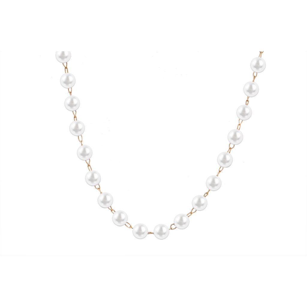 Řetízek z chirurgické oceli, pozlacený 14k, ozdobený jemnými bílými perlami 6000612-1