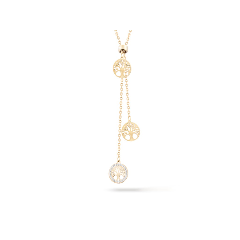 Řetízek z chirurgické oceli, pozlacený 18K, strom života, osazení zirkony 3001354