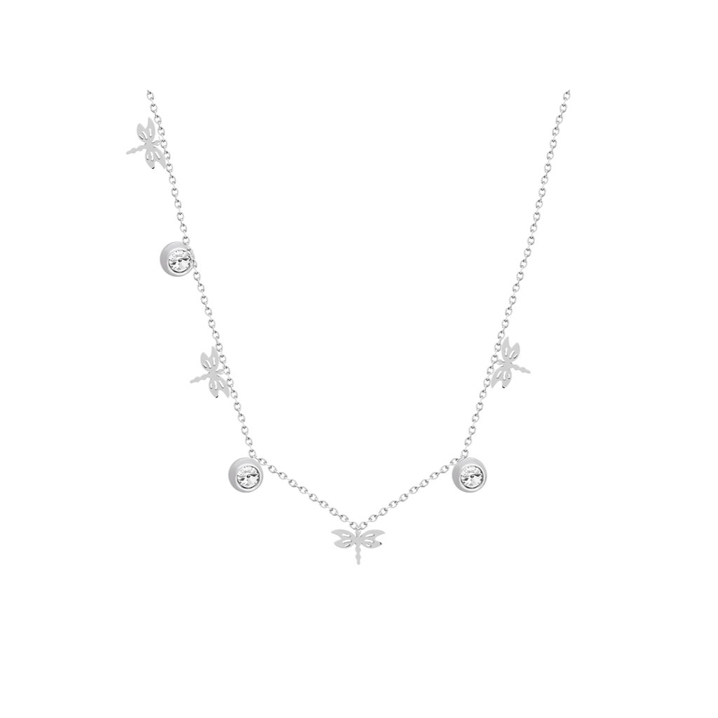 Řetízek z chirurgické oceli, vážka a zirkony z kvalitní nerezové oceli skvěle doplní váš každodenní outfit.