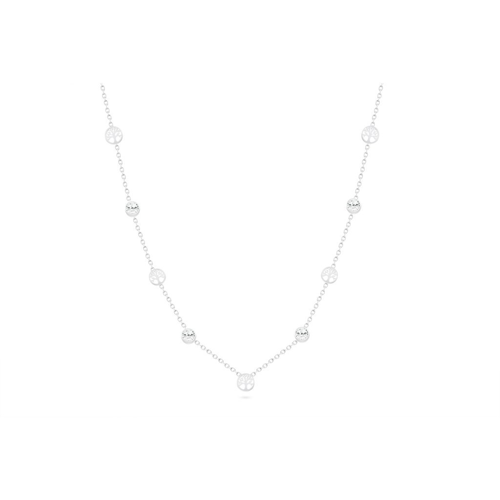 Decentní řetízek z chirurgické oceli, zdobený jemnými stromy života a zirkony, je vyrobený z kvalitní nerezové oceli.