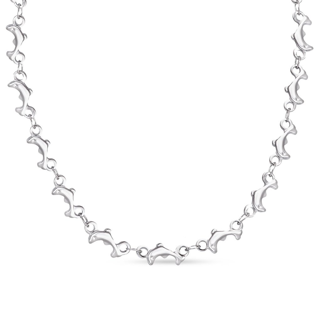 - Představujeme řetízek z chirurgické oceli, který je složený z malých delfínů. Tento krásný kousek je precizně vyroben z vysoce kvalitní chirurgické nerezové oceli a je vybaven elegantním zapínáním na karabinku. Ať už jej budete nosit samostatně, nebo jej doplníte dalšími doplňky, tento řetízek jistě udělá dojem, ať už jej budete nosit kdekoli! Stříbrná barva nerezové oceli z něj dělá ideální doplněk ke každému oblečení, kterému dodá trochu jiskry, aniž by byl příliš výrazný. Jeho antialergické vlastnosti navíc zajišťují, že nedojde k podráždění citlivé pokožky.