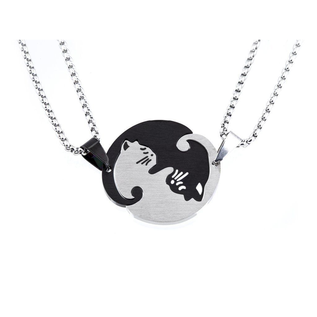 Velice nápaditý řetízek s přívěškem dvou koček, kombinace stříbrné a černé barvy