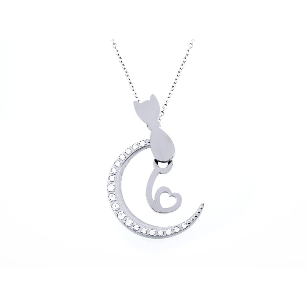 Řetízek s přívěškem kočička na měsíci se zirkony