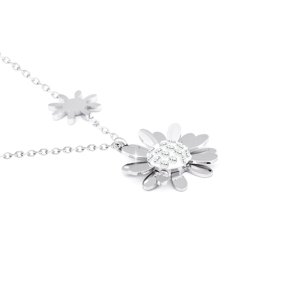 Decentní řetízek s přívěskem kytičkou zdobený zirkony je vyrobený z kvalitní nerezové oceli. Přívěšek kytka je vykládán zirkony . Je univerzálním doplňkem k jakémukoliv oděvu.