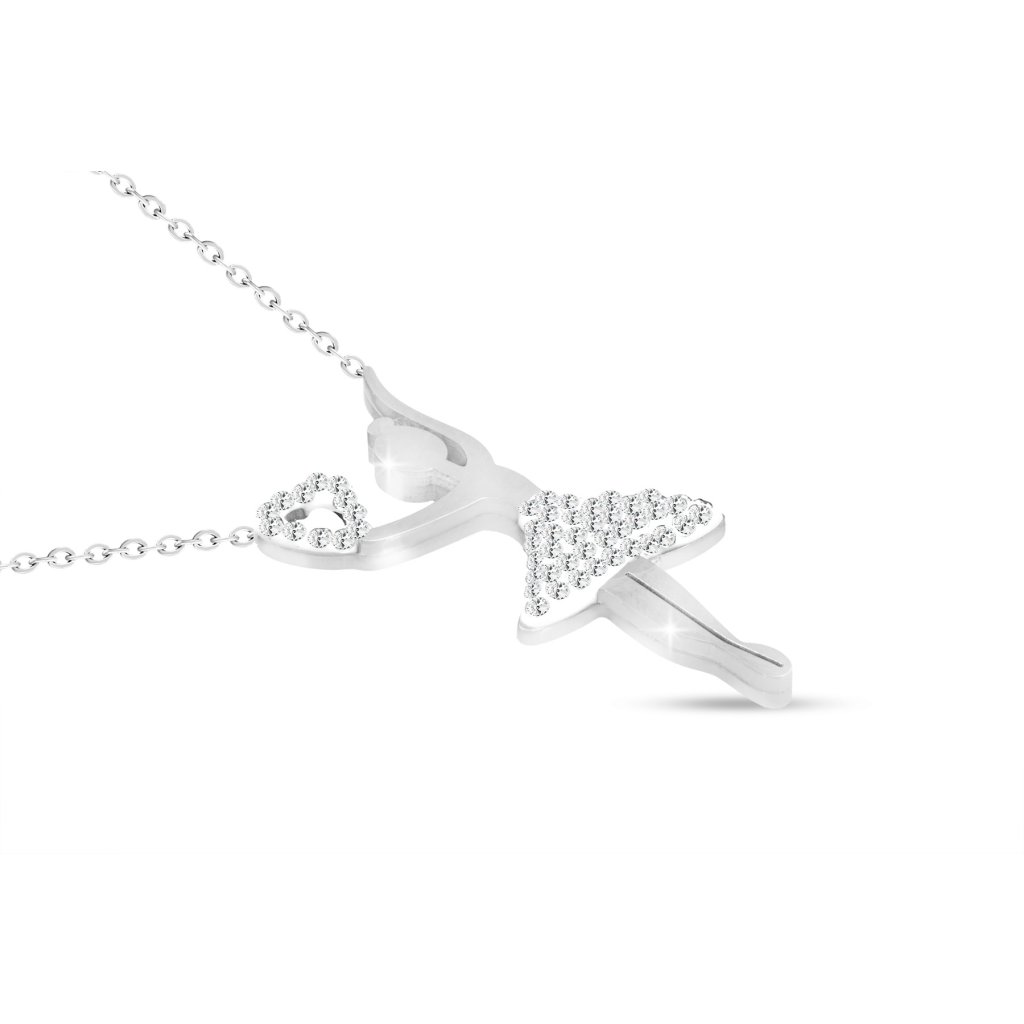 Řetízek z chirurgické oceli s přívěskem, baletka s čirými zirkony 3001549