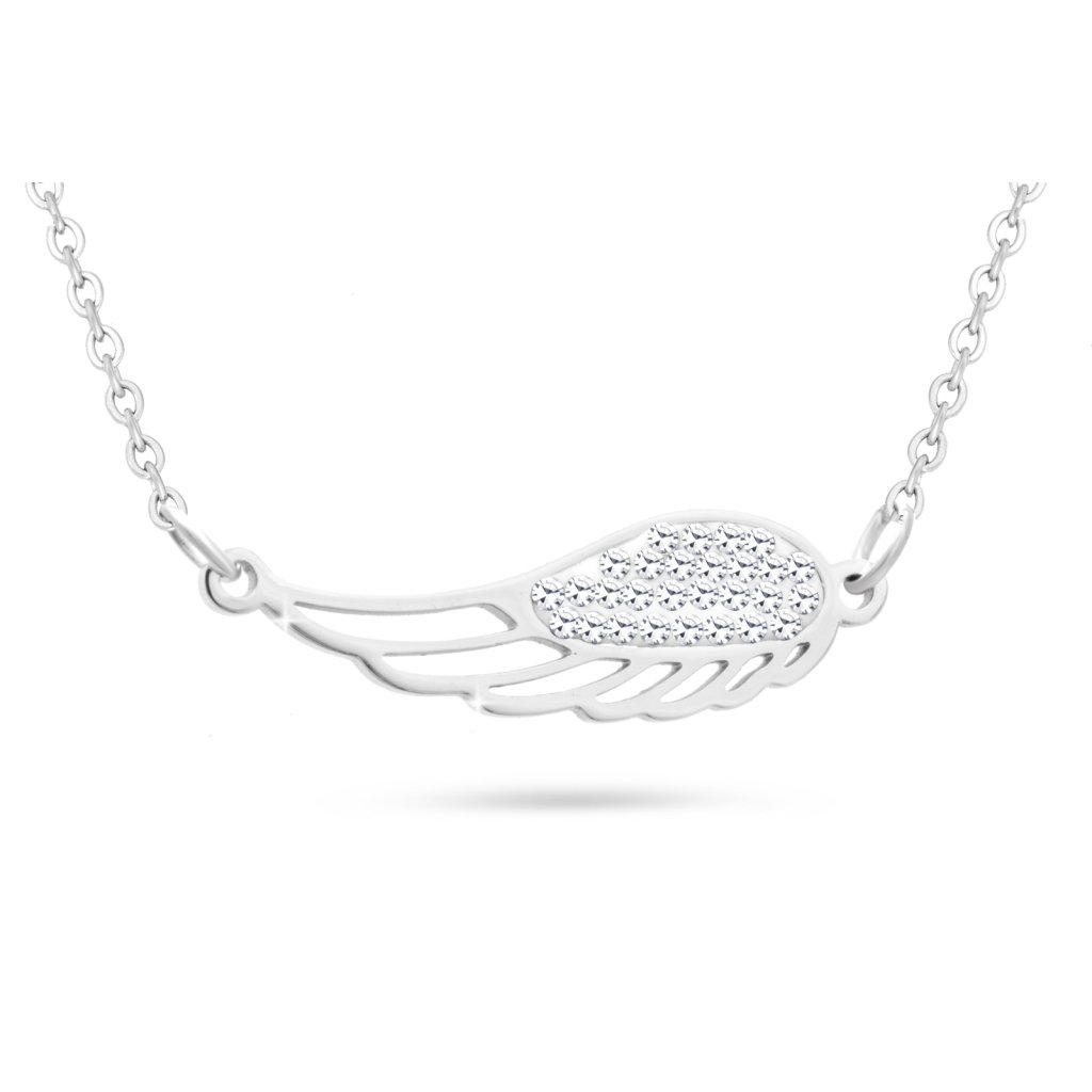Decentní a jemný řetízek z chirurgické oceli s přívěskem, ležící andělské křídlo se zirkony.