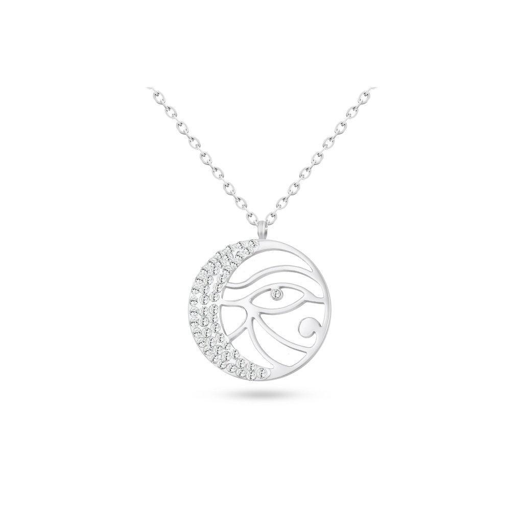 Decentní řetízek z přívěskem měsíce s krajinou a zirkony je vyrobený z kvalitní nerezové oceli. Je univerzálním doplňkem k jakémukoliv oděvu. Řetízek je velice vkusný. Zapíná se na karabinku.Tento výrobek neobsahuje těžké kovy.