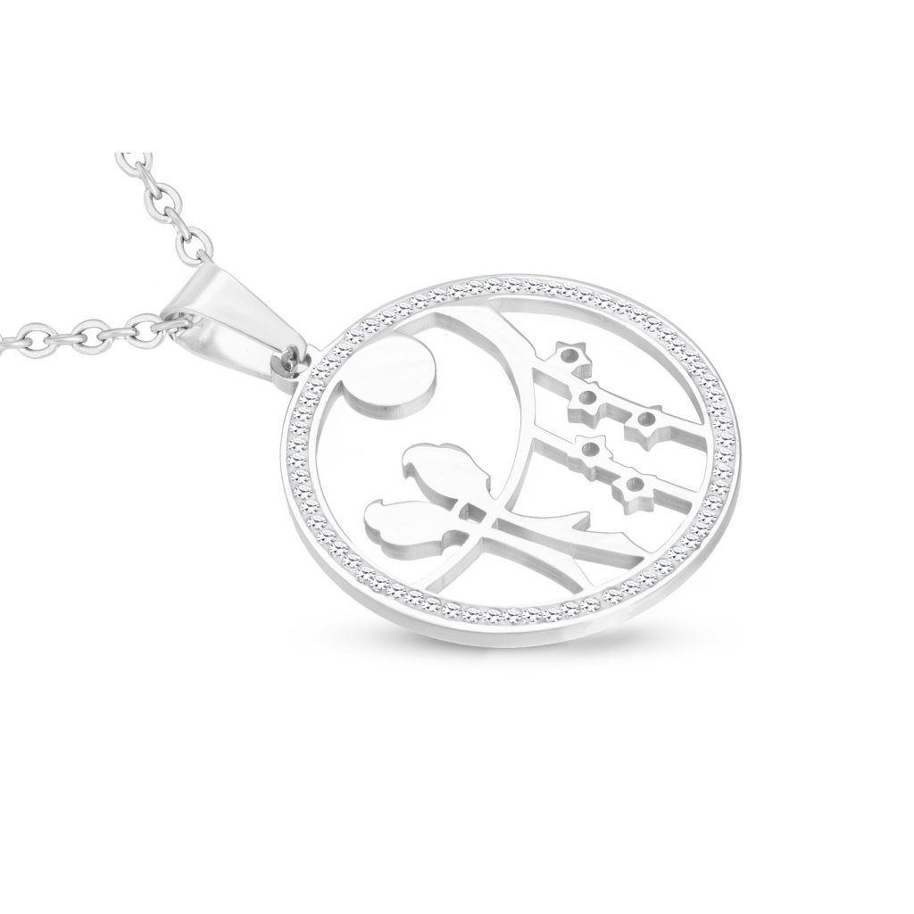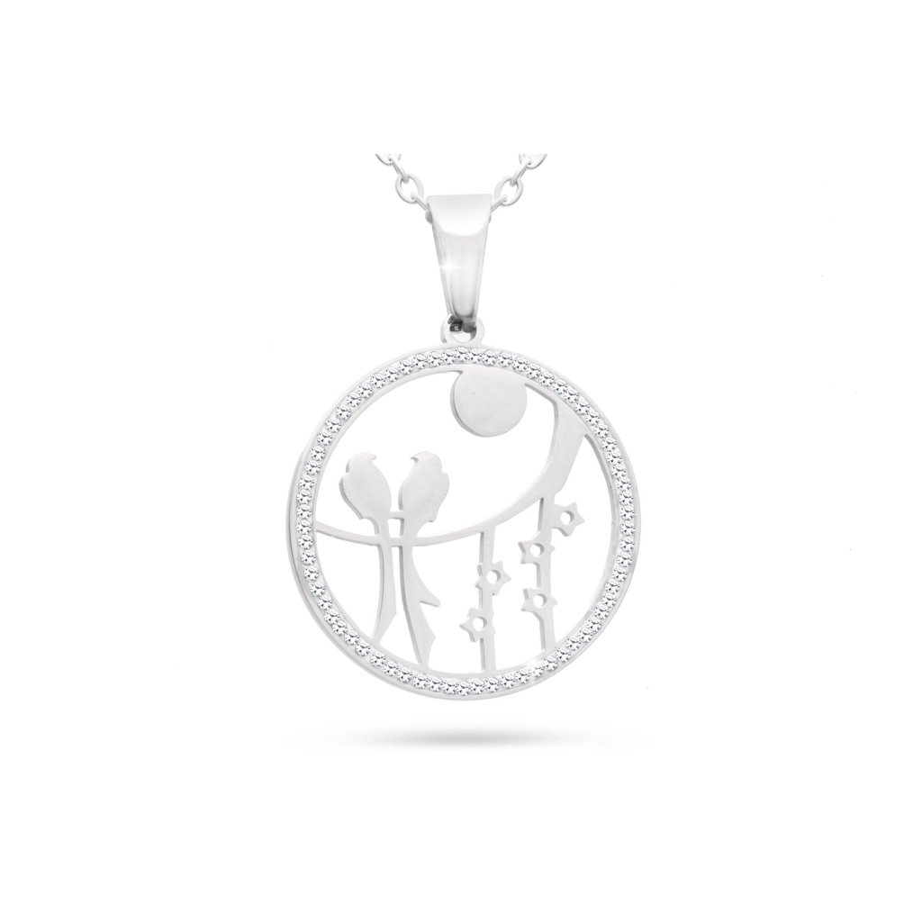 Řetízek z chirurgické oceli s přívěskem, ptáčci v kruhu se zirkony 3001715